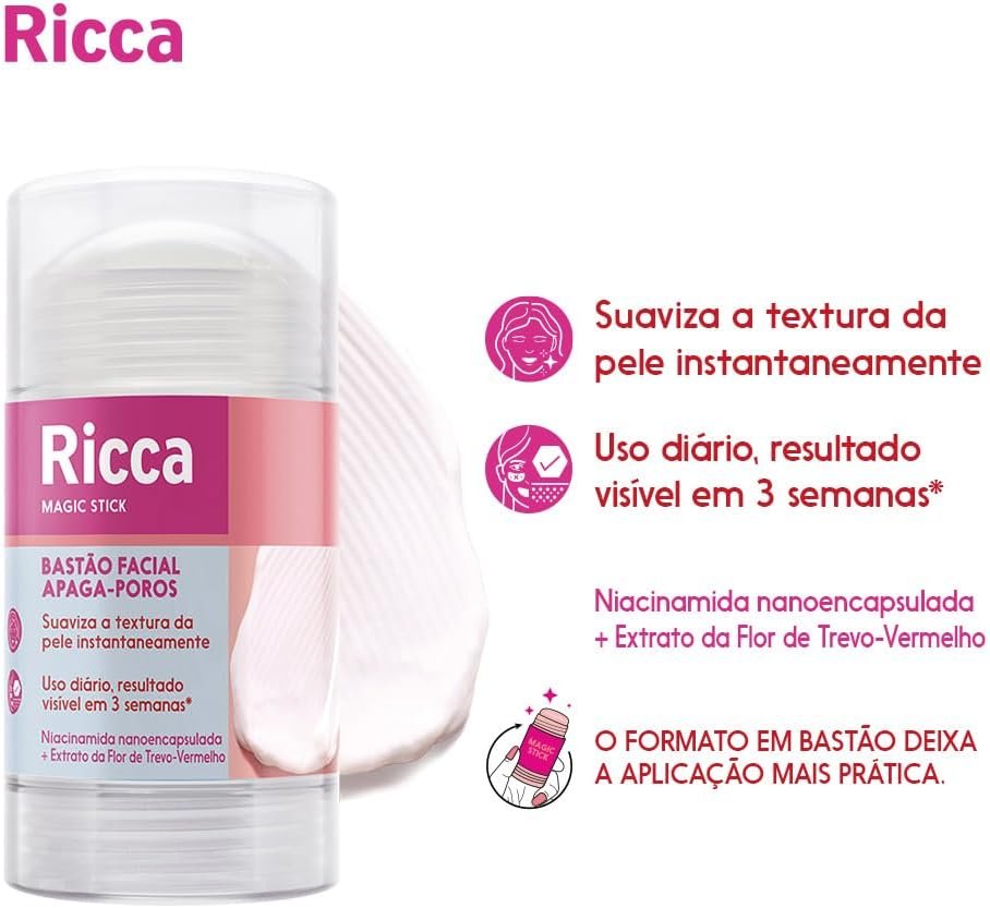 O bastão facial apaga-poros é um cosmético projetado para oferecer resultados instantâneos em relação a poros dilatados e texturas irregulares. Com uma fórmula poderosa que inclui niacinamida nanoencapsulada e extrato de trevo vermelho, ele se propõe a ser um aliado tanto na rotina de cuidados com a pele quanto na hora de se preparar para a maquiagem.