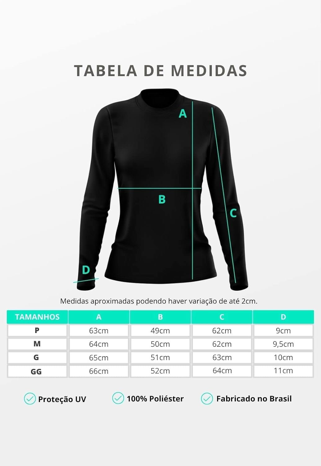 Para garantir que você escolha a melhor opção, confira a tabela de tamanhos abaixo: