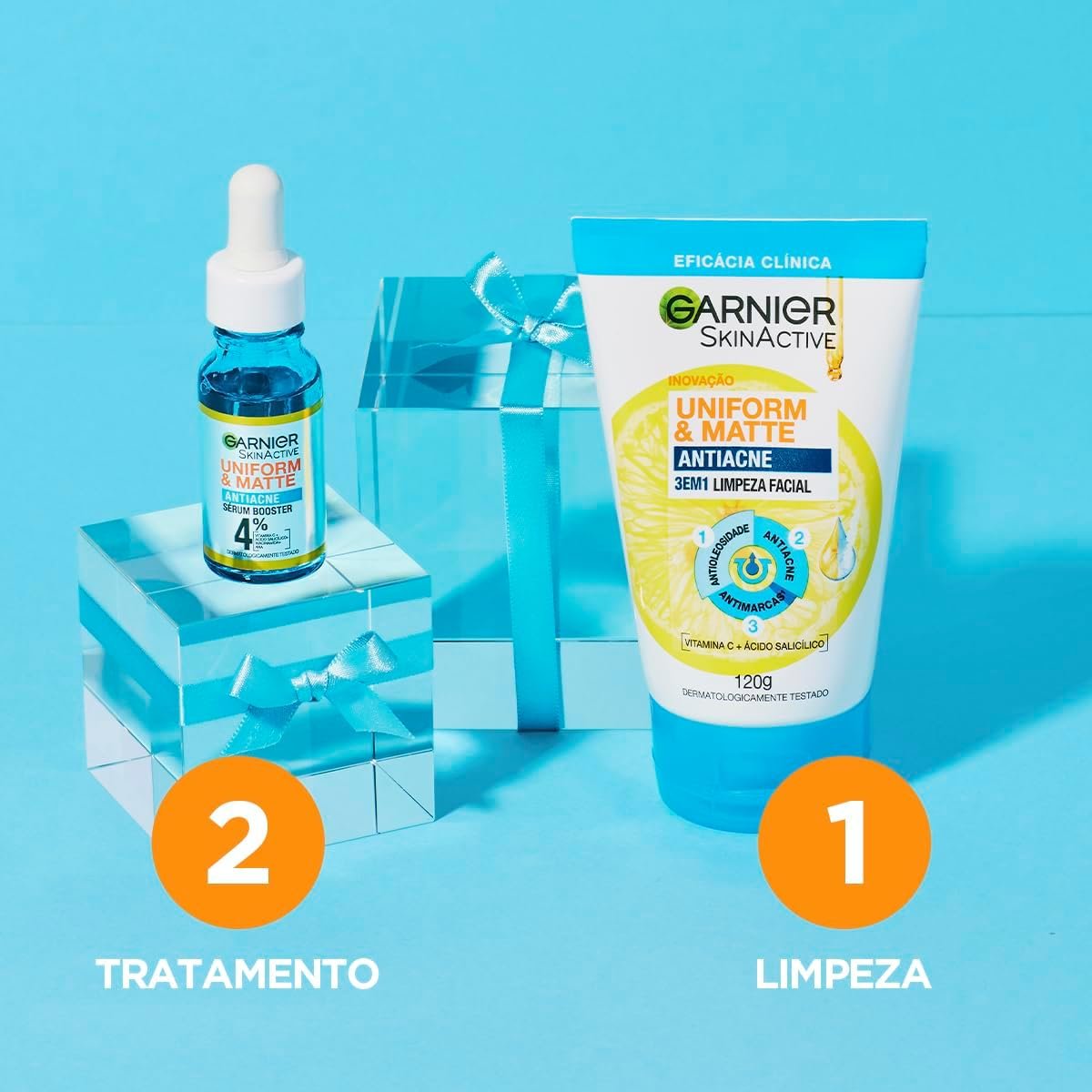 O Sabonete Facial 3 em 1 Garnier Uniform & Matte Antiacne é a solução multifuncional que poderia transformar a sua rotina de cuidados com a pele. Com uma proposta inovadora, ele reúne três passos essenciais em um único produto: limpeza, esfoliação e ação de máscara. Isso significa que você pode cuidar da sua pele de maneira eficaz e prática, mesmo diante de um dia a dia corrido.
