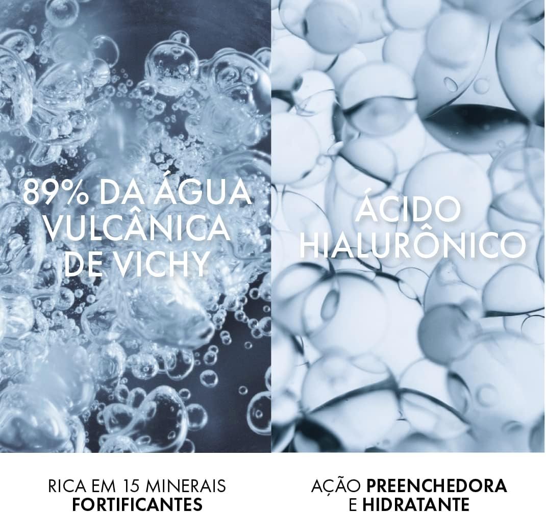 - Água Vulcânica Vichy: Carga mineral que fornece proteção, fortalece e melhora a qualidade da pele.