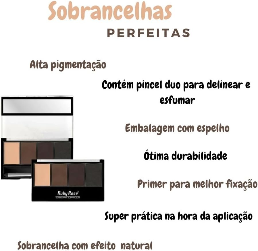 A Ruby Rose se destaca pela qualidade de seus produtos a um preço acessível. A Sombra Para Sobrancelhas apresenta: