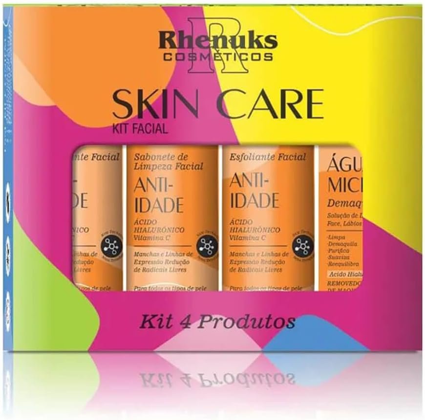 Investir no Rhenuks Skin Care – Kit Facial Anti Age é uma oportunidade para quem busca cuidados efetivos e rápidos para a pele. Seus quatro produtos foram cuidadosamente formulados para atuar em conjunto, proporcionando uma experiência completa de limpeza, esfoliação, e hidratação.